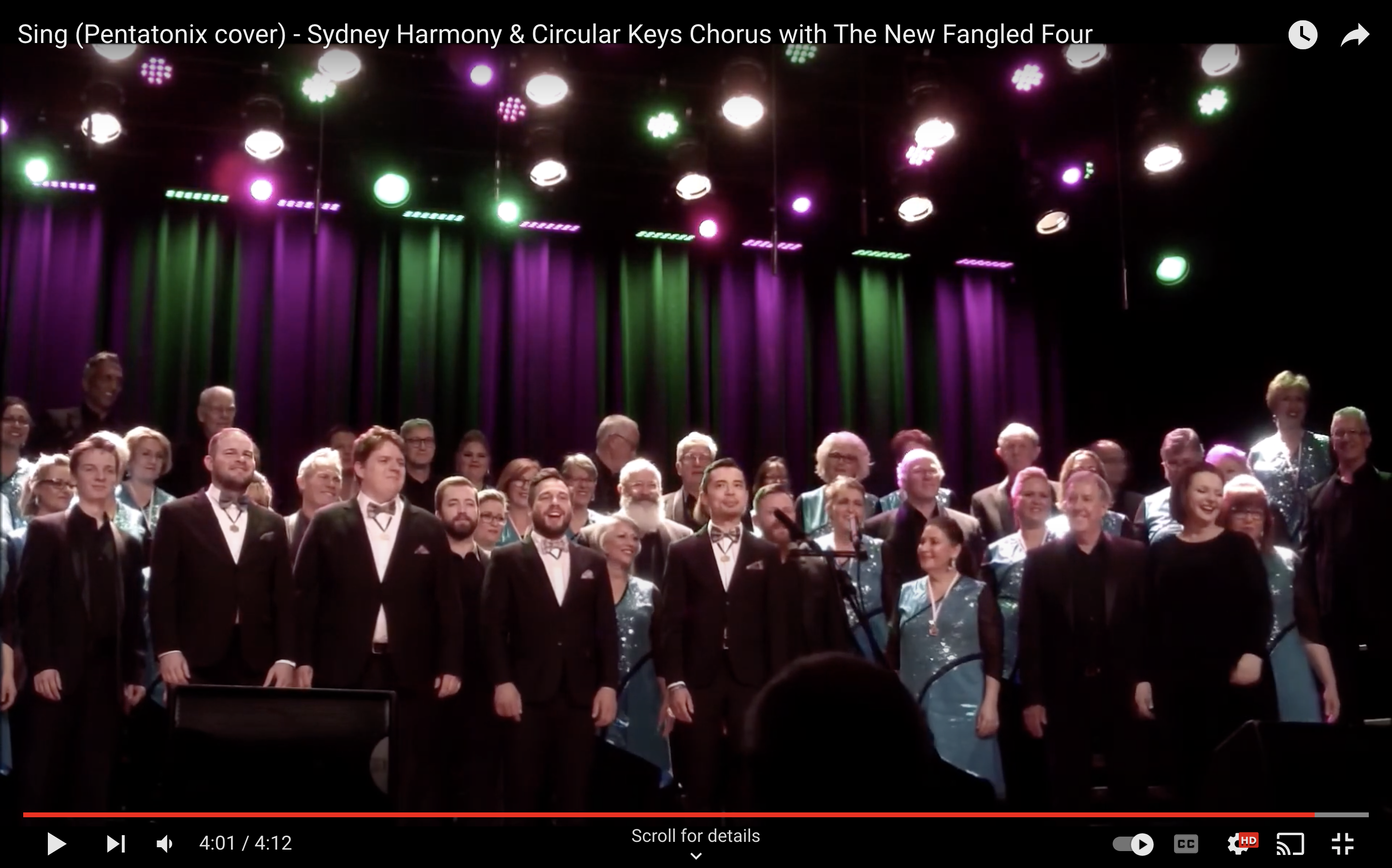 “Sing” – as sung by Pentatonix Arrangement by Wayne M. Grimmer Performed in Sydney on 10th August 2019. Sydney Harmony & Circular Keys Chorus with The New Fangled Four