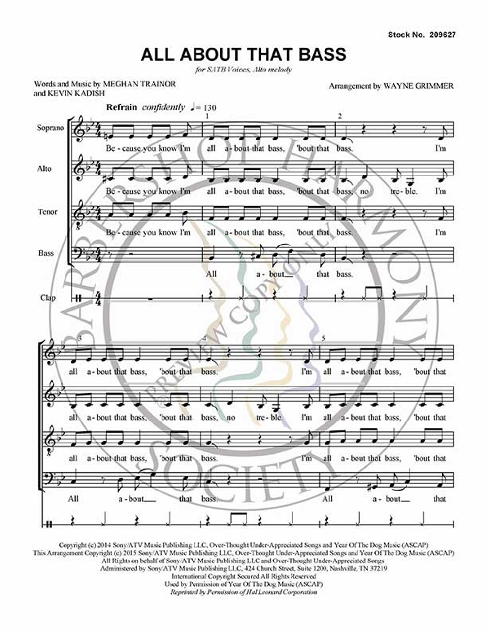 SATB music, in general, is for arranged for mixed voices. This music is composed of soprano, alto, tenor, and bass parts. In the barbershop style, these lines are often referred to as tenor, lead, baritone, and bass.